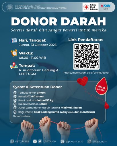 Ayo ikut berpartisipasi dalam kegiatan Donor Darah yang diselenggarakan oleh LPPT UGM bekerja sama dengan Palang Merah Indonesia (PMI)!